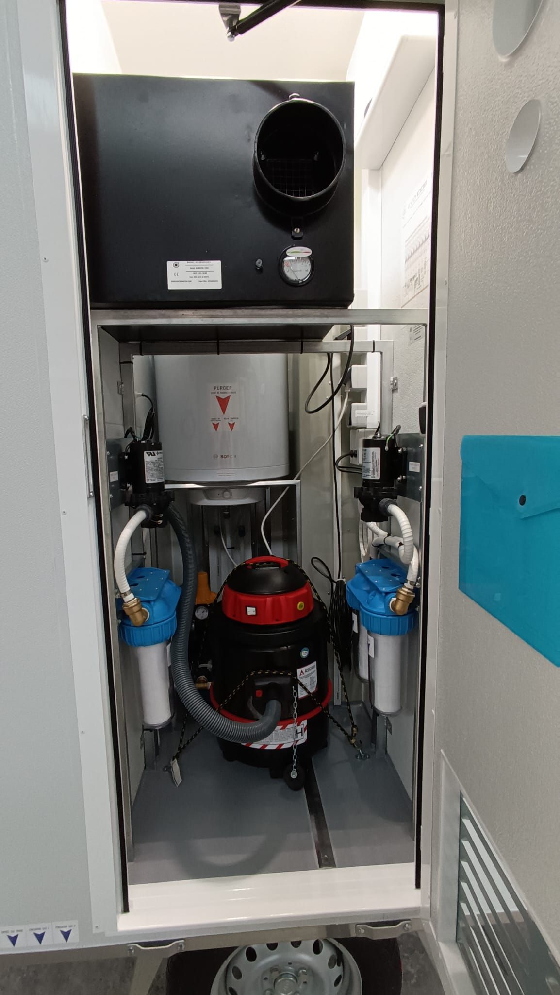 - 2 bombas de diafragma con control neumático desde las duchas para drenaje de aguas residuales